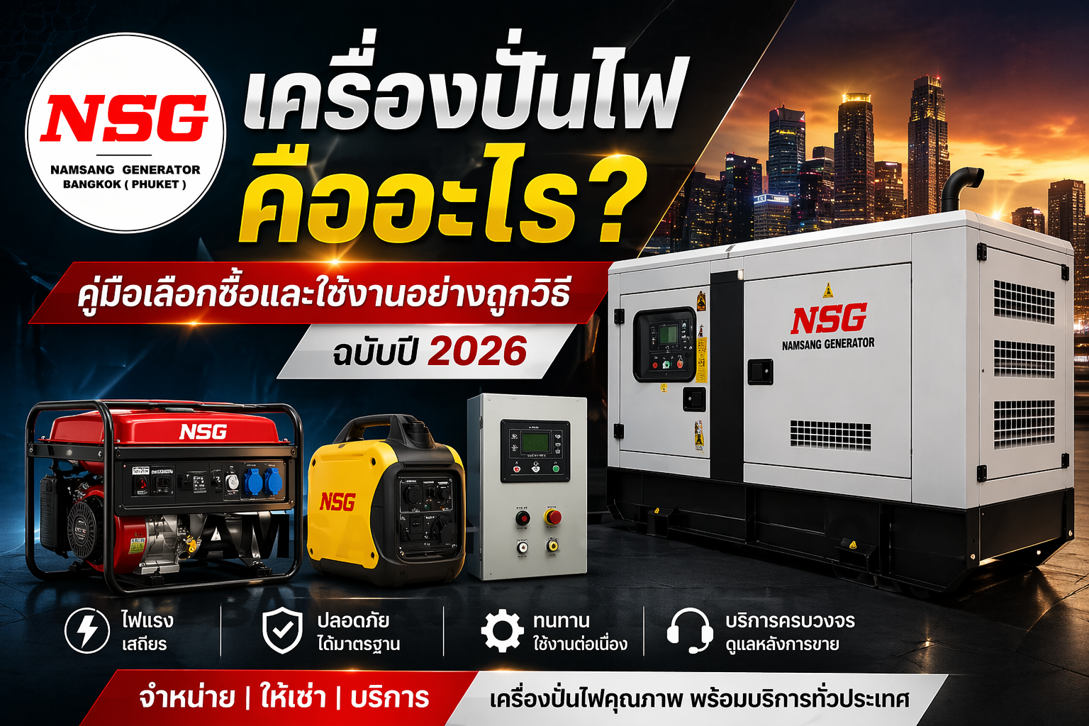 รวมทุกเรื่องที่ควรรู้เกี่ยวกับเครื่องปั่นไฟ (Generator) ตั้งแต่หลักการทำงาน ประเภทเครื่องปั่นไฟ วิธีการเลือกขนาด kVA ให้เหมาะกับการใช้งาน พร้อมเทคนิคการดูแลรักษา เพื่อให้เครื่องปั่นไฟทำงานได้ต่อเนื่อง ปลอดภัย คุ้มค่าในระยะยาว